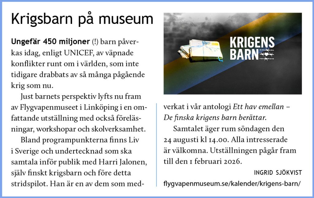 Krigsbarnen på Flygvapenmuseet i Linköping i augusti